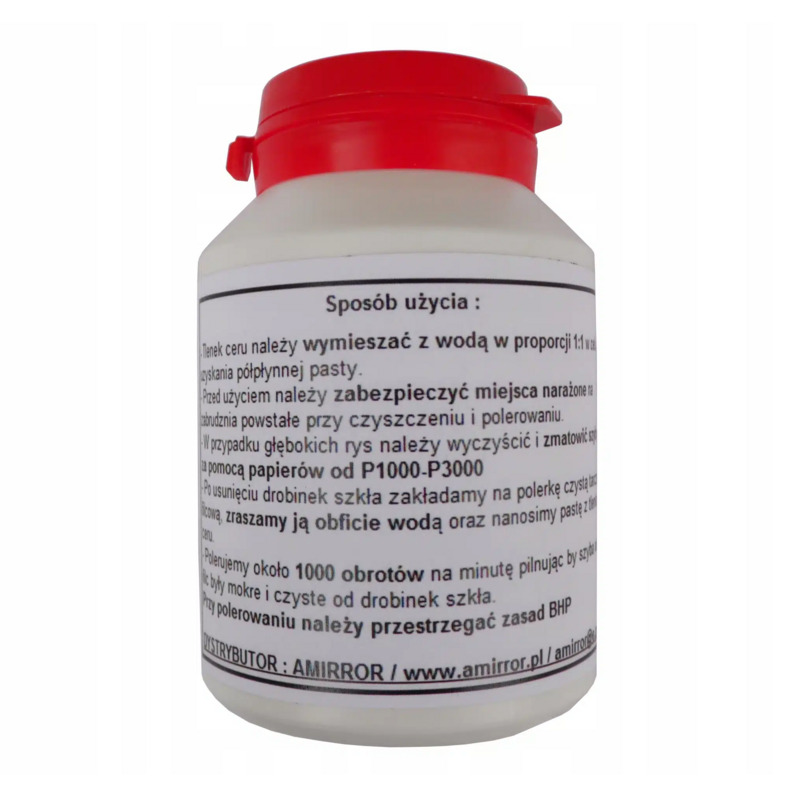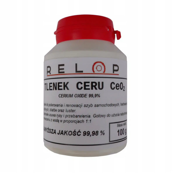 Podstawowym składnikiem naszego zestawu jest tlenek ceru czyli substancja chemiczna mającą zastosowanie w przemyśle szklarskim i motoryzacyjnym. Niezastąpiony jest również w budownictwie i branży wykończeniowej do polerowania szkła